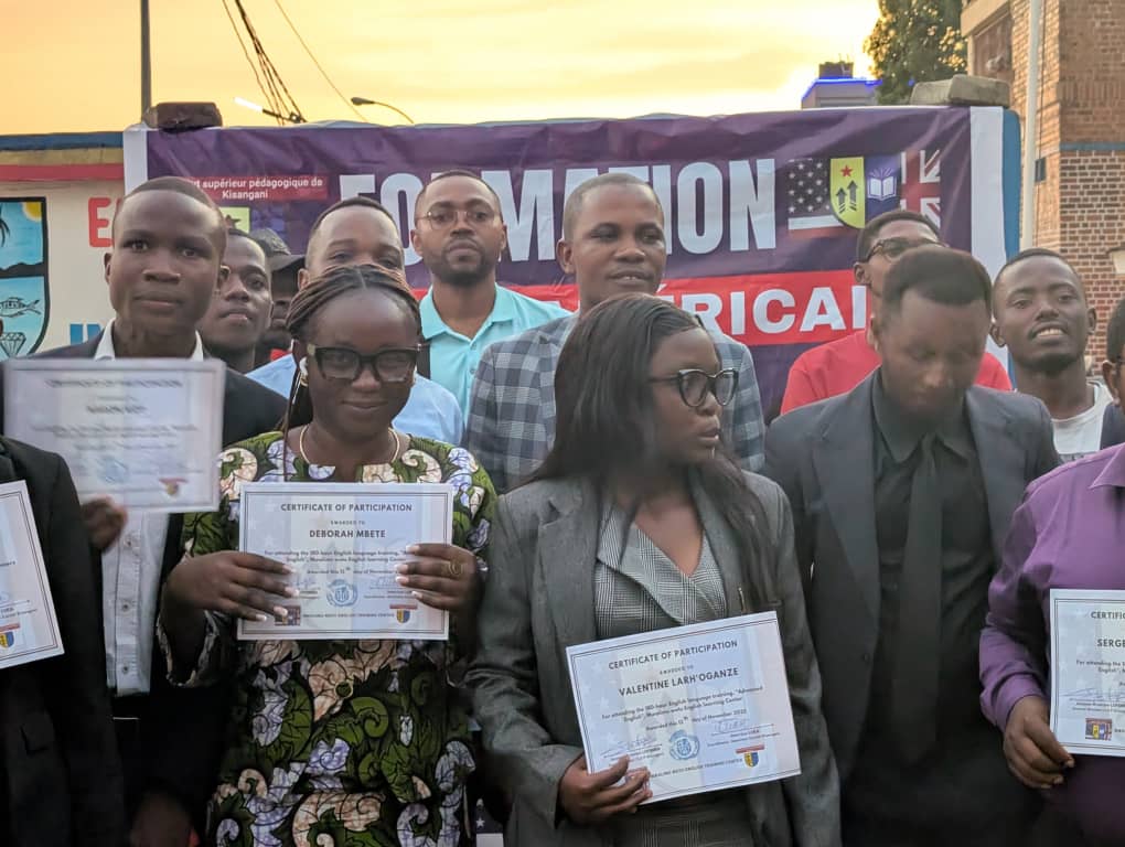 Ce vendredi 14 novembre 2025, au total 18 jeunes ont reçu leurs brevets de participation à une formation d’anglais de 3 mois organisée par le Centre de formation Mwalimu Wetu de l’Institut Supérieur Pédagogique de Kisangani. Parmi les participants figurent des entrepreneurs, des prêtres, des enseignants et autres. Avant la remise des brevets, les lauréats ont défendu les travaux de fin de formation en anglais.
