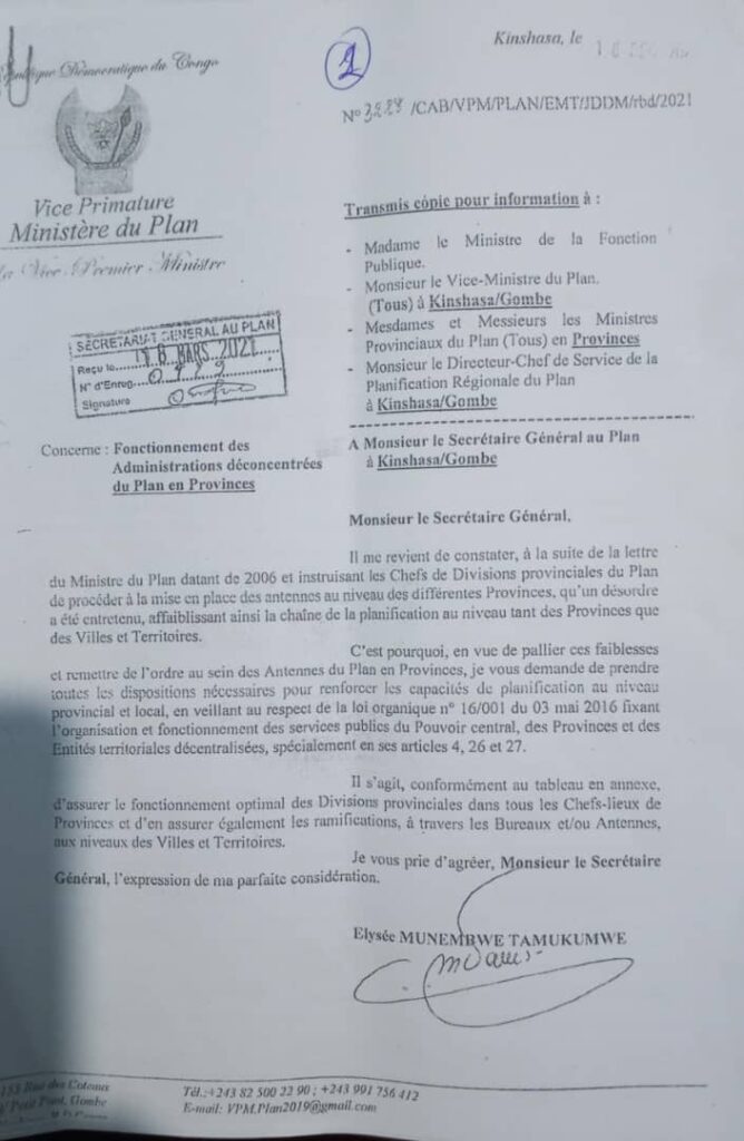 Loin d’être une décision arbitraire, ce déploiement répond à des instructions hiérarchiques datant de près de deux décennies. Le CD rappelle avec précision la lettre du Ministre National du Plan de novembre 2006 sur l’élargissement des structures de planification, renforcée par une correspondance du Vice-Premier Ministre du Plan en décembre 2020.